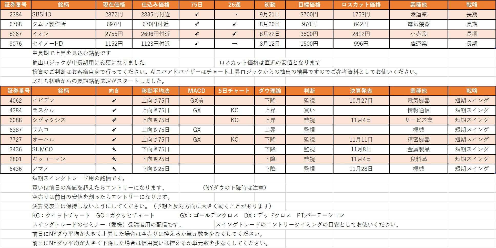 【ドラゴンAI株、厳選銘柄情報】最終更新 2022/10/31