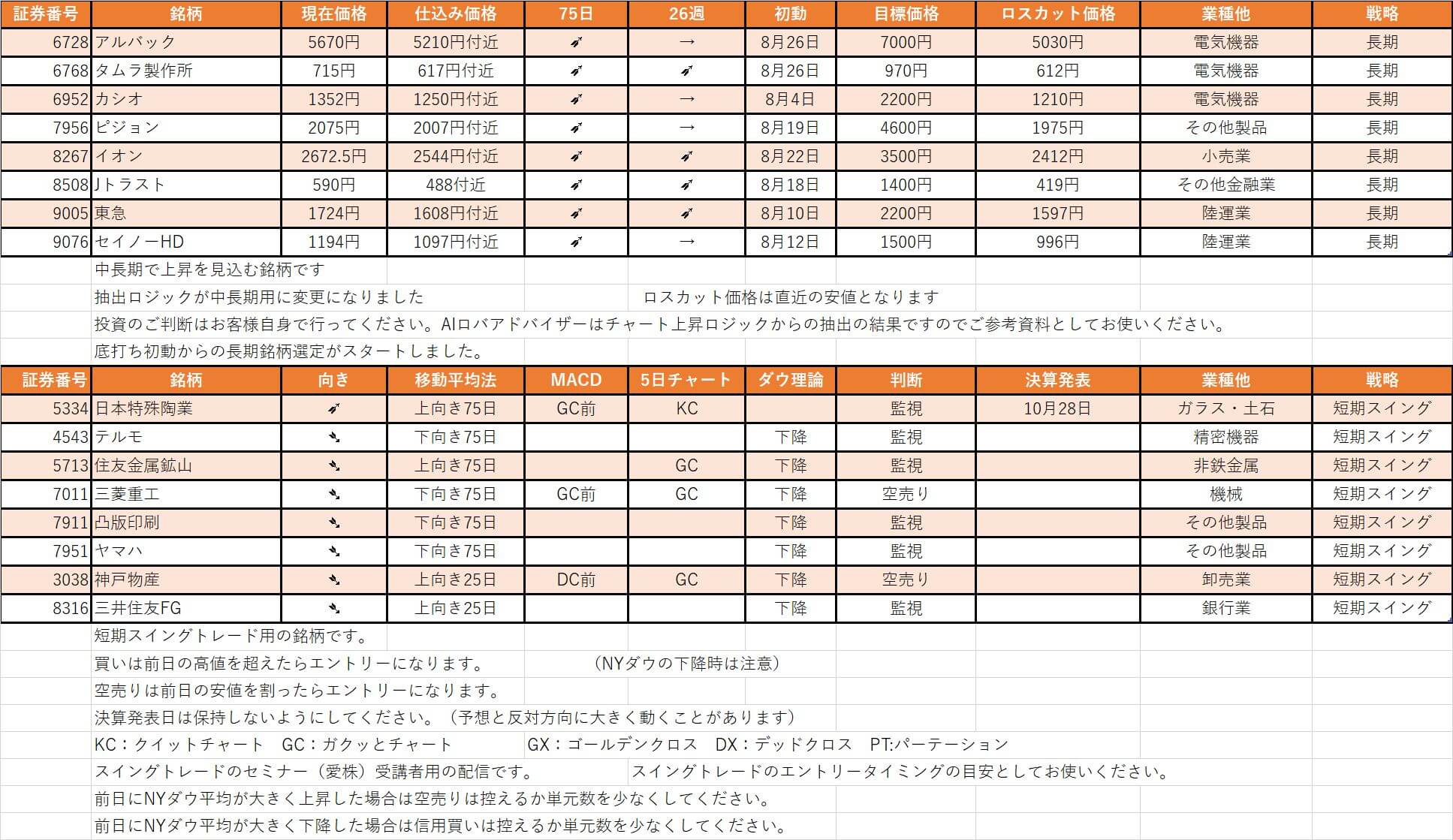 【ドラゴンAI株、厳選銘柄情報】最終更新 2022/10/10