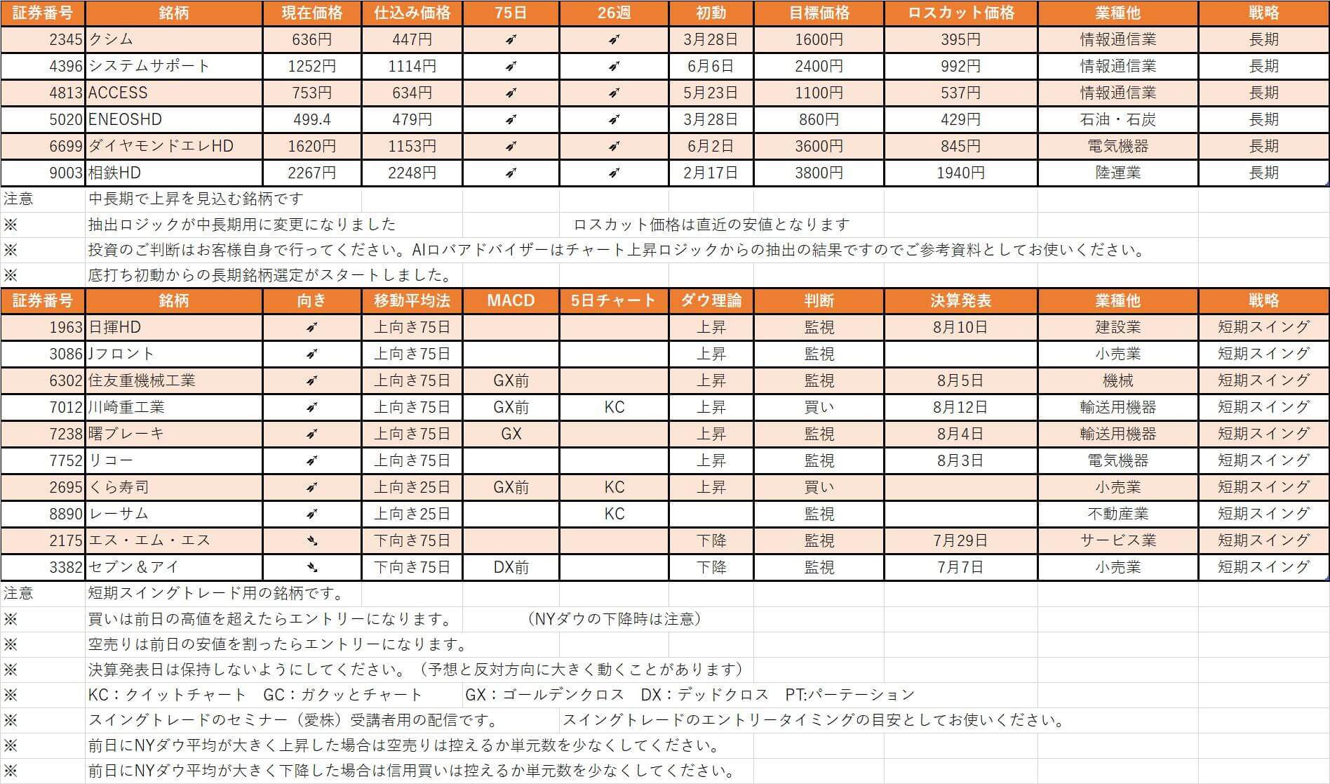 【ドラゴンAI株、厳選銘柄情報】最終更新 2022/7/25