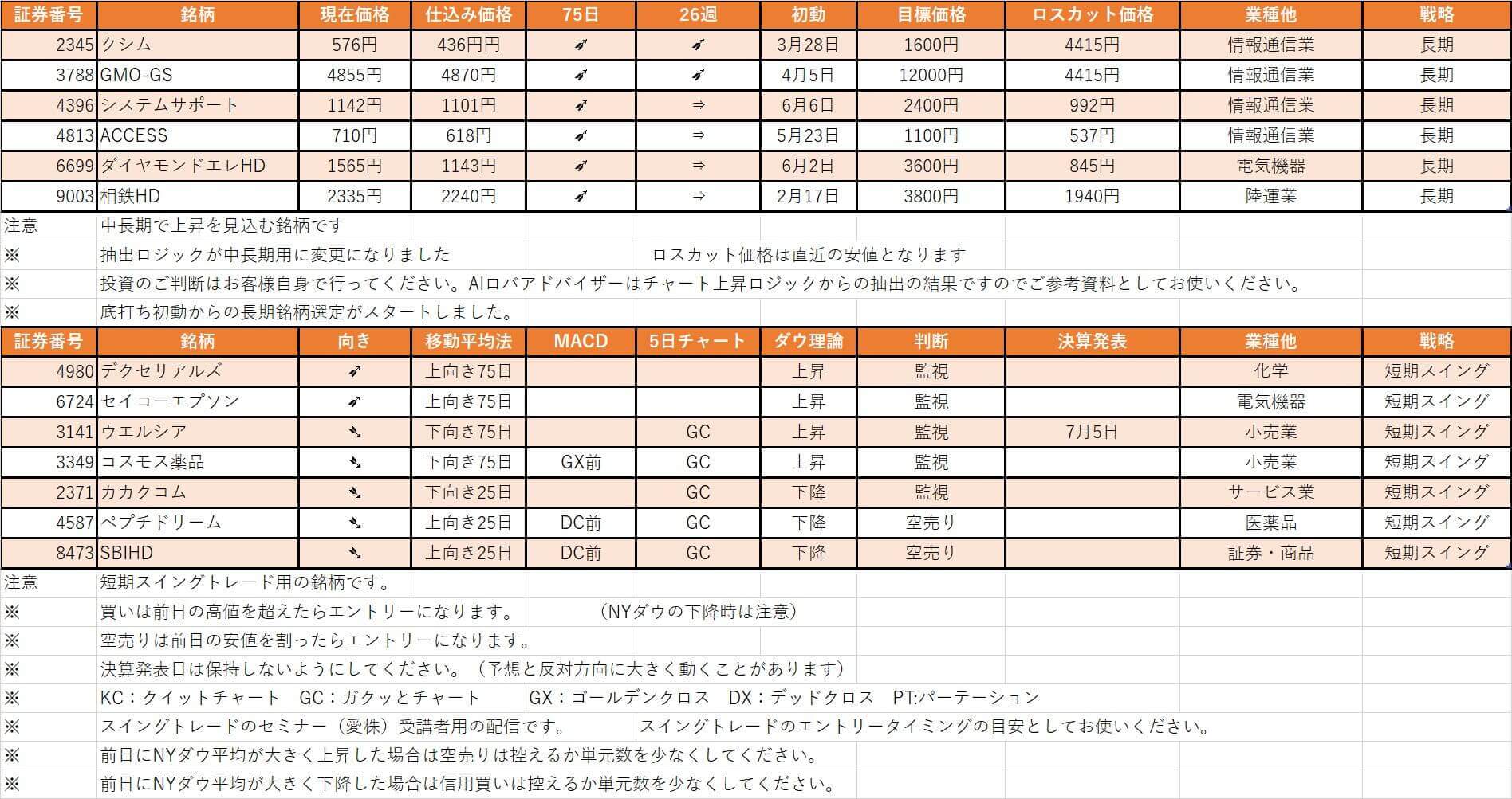 【ドラゴンAI株、厳選銘柄情報】最終更新 2022/7/4