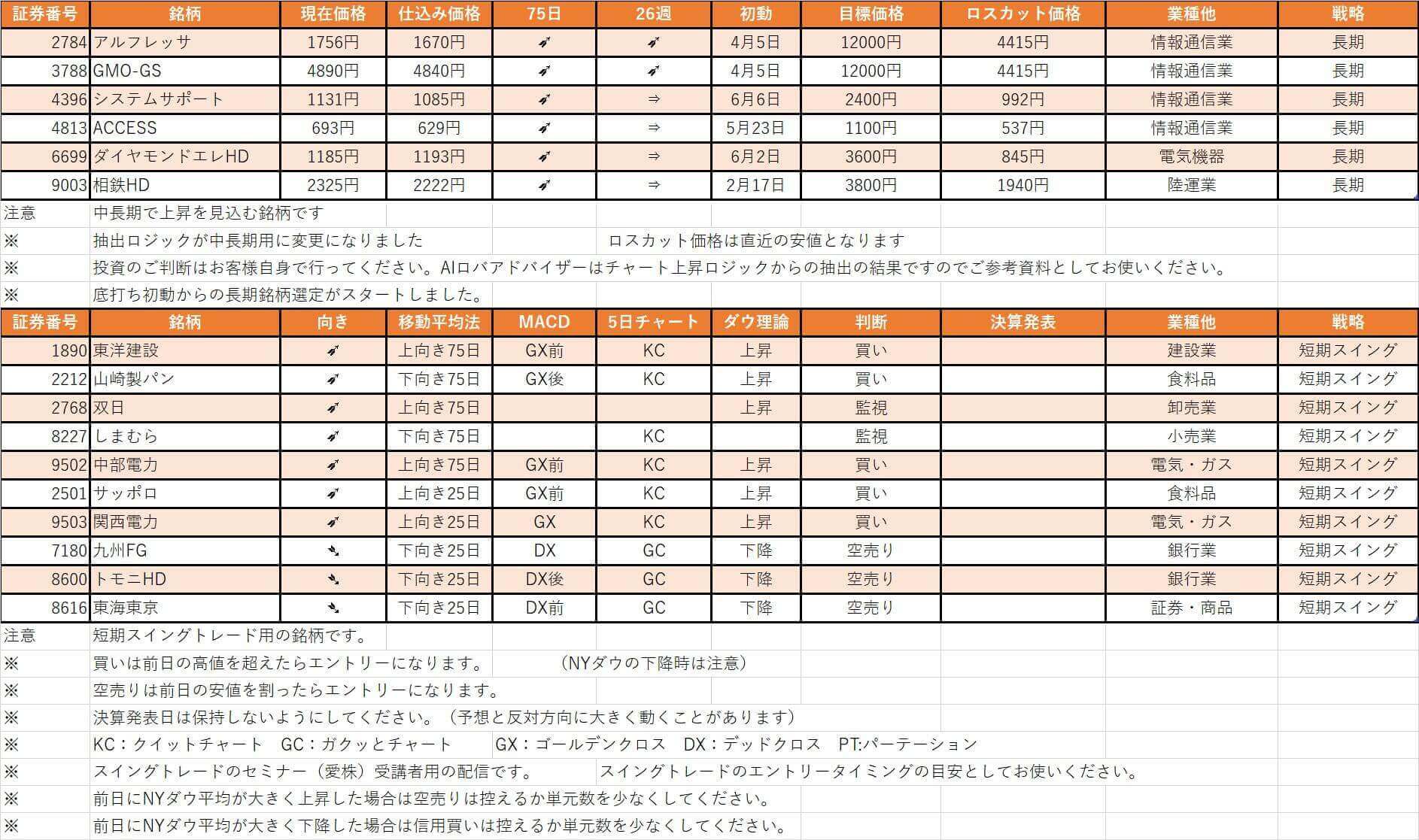 【ドラゴンAI株、厳選銘柄情報】最終更新 2022/7/4