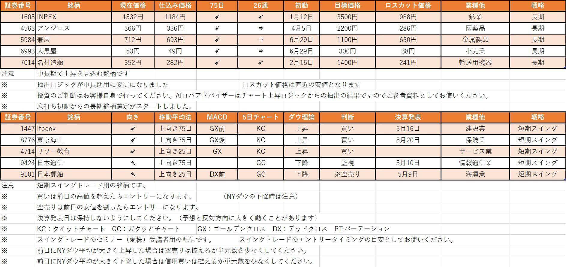 【ドラゴンAI株、厳選銘柄情報】最終更新 2022/5/9